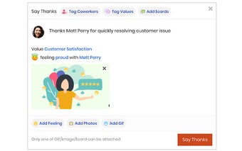Thanks, Chrome tarayıcısı için geliştirilmiş bir ödül ve tanıma platformudur. Şirketlerin ödüllendirme kültürünü güçlendirmelerine yardımcı olan bu platform, kullanıcıların birbirlerine değer vermelerini teşvik eder. Temel özellikleri arasında, çalışanların organizasyonel değerlere uygun şekilde birbirlerine maddi olmayan takdirde bulunabilmesi, otomatik uzun hizmet yıldönümü kutlamaları ve anlık, aylık, üç aylık ve yıllık ödüller için iş akışına dayalı ödül adaylıkları yer alır.